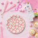 Whimsical modern floral design featuring scattered flat white daisies with sunflower gold centres over a soft pink background. Contact for assistance in customising or personalising.