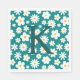 Whimsical modern floral design featuring scattered flat white daisies with sunflower gold centres over a bold teal blue background. Design personalised with a large monogram. Contact for assistance in customising or personalising.