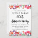 Celebrate your golden anniversary in style with our modern floral 50th anniversary party invitations. Featuring elegant watercolor flowers, this design is the perfect blend of classic and contemporary. Impress your guests with this sophisticated invitation as you commemorate 50 beautiful years with your beloved couple.