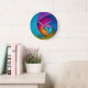 Modern Floral Abstract Art Pink Blue Pattern #17 Round Wall Clock