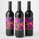 Modern Floral Abstract Art Red Blue Pattern #07 Wine Label