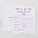 Add a meaningful and memorable touch to your celebration with this purple boho floral “Advice for the Bride” card. Designed with soft botanical accents and modern typography, it invites guests to share heartfelt advice, wishes, and marriage tips for the bride-to-be. Perfect for bridal showers, this elegant card becomes a keepsake the bride can treasure long after the celebration, filled with love, wisdom, and thoughtful messages from family and friends.