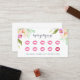 Elegant floral business cards feature a bouquet of watercolor painted peony and rose flowers in pastel shades of blush pink and spring green, framing a 10-punch loyalty program with pink lip print kisses. Personalize with your own loyalty terms and add your contact information to the reverse side. A chic choice for makeup artists, lip color distributors and beauty retailers.