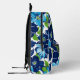 Add a burst of colour and flair to your everyday adventures with this stunning floral backpack. The bold navy and aqua blue flowers pop against a crisp white background, perfectly accented by vibrant green leaves for a fresh, tropical vibe. Designed for style and functionality, it features a spacious main compartment, a secure front zipper pocket, and a sleek black handle for a modern touch. Whether you're heading to school, work, or a weekend outing, this backpack is the perfect statement piece to elevate your look effortlessly.