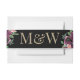 Modern Floral Burgundy Black Initials Wedding Invitation Belly Band. Stylish paper belly band features customisable antique gold coloured monogram initials adorned with digitally adjusted hand painted watercolour flowers and leaves in rich burgundy, maroon, marsala, blush, coral, pinks, greens, and blue greys printed on midnight black. Versatile design excellent for weddings or other special occasions, celebrations or more.
