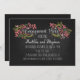 Chalkboard engagement party invitation with various pink coral chalk flowers, blossoms, love hearts and leaves. Stylish and trendy fancy typography and calligraphic script font invites. ------------Please contact me if you need help with customisation or have a custom colour request. ---------- If you push CUSTOMIZE IT button you will be able to change the font style, colour, size, move it etc. it will give you more options!