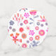 Bright garden of modern pink and orange watercolor flowers in a scattered pattern on a white background. Original art by Nic Squirrell.