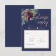 Modern Floral Elegance Navy Rose Gold Wedding RSVP Card