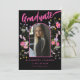 Modern Floral Graduate Photo Black Pink Script Announcement