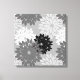 Wrapped canvas in a modern take on a traditional Japanese floral kimono print - stylised flowers in shades of graphite and light grey / grey, black and white on medium grey background