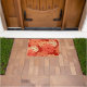 Doormat in a modern take on a traditional Japanese floral kimono print - stylised flowers in shades of pastel to deep orange on a deep mandarin orange background