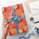Modern Floral Kimono Print, Mandarin Orange Wrapping Paper