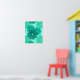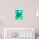 Poster in a modern take on a traditional Japanese floral kimono print - stylised flowers in shades of teal green, turquoise / peacock, and sea foam on a light aqua background