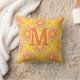 Modern Floral Orange Yellow Monogram Pillow