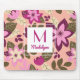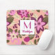 Modern Floral Pink Orange Pattern Monogram Mouse Mat