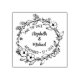 This "Save the Date" rubber stamp features a flower frame with couple names and date.