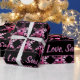 Modern Floral Snowflakes Pattern Black Red Pink Wrapping Paper