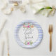 Modern Floral Watercolor Navy Stripe Wedding Paper Plate