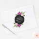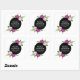 Your name or business name is elegantly styled within a circular wreath of flowers in a modern arrangement on this personalised sticker. Perfect for boutiques, Poshmark sellers, Etsy shops, salons, product labels, candles, beauty products, or personal use. Design © 1201AM Design Studio