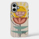 The vector illustration on this case shows a modern fantasy flowers and a bright shining sun on a partly striped background. The colours are trendy and very popular in this year. The monogram fonts are a template object and can be changed easily into any other text.It is also possible to chose a different font type, font colour or font size