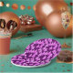 Paper plates in a pattern of Mid-Century Modern, flower embellished, Christmas trees in a silky gradient - trees in a pale orchid gradient, accented with violet and magenta, on a deep amethyst purple background
