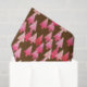 Mid-Century Modern tissue paper, flower embellished Christmas trees in a silky gradient - trees in a gradient of coral pink and cream, accented with coral, on a chocolate brown background
