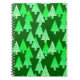 Mid-Century Modern, flower embellished, Christmas trees in a silky gradient - trees in shades of pale mint and lime green on a dark pine background