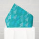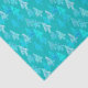 Mid-Century Modern tissue paper, flower embellished Christmas trees in a silky gradient - trees in shades of soft turquoise and aqua on a rich turquoise / peacock background