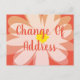 Modern flower design change of address we've moved postcard. Pretty moving cards for new home or relocation. Elegant moving card for new home, business, company etc. Floral design with brush script typography.