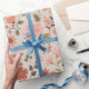 Modern Flowers Leaves Pink Rust Girly Floral Wrapping Paper