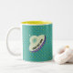 Modern flying saucer & stars on teal Two-Tone coffee mug