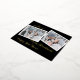 A modern asymmetrical design foil print postcard with 2 angled frames for photos on a black background!