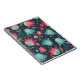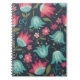 Elevate your note-taking with this striking and whimsical floral notebook. The design features a seamless, modern folk-art pattern with stylized bell-shaped flowers in vibrant teal and coral pink, scattered across a deep navy blue background. Accented with delicate pink blossoms and golden swirls, this bold botanical pattern is perfect for journaling, creative writing, or as a chic gift for anyone who loves unique, contemporary floral art.