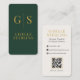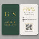 A sophisticated business card design featuring a rich forest green background with elegant gold accents. The bold GS monogram creates a strong first impression, while the reverse side includes refined typography, clear contact details, and a QR code for seamless digital connections. Ideal for consultants, entrepreneurs, and professionals seeking a modern yet timeless brand identity.