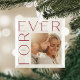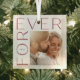 Celebrate your marriage or engagement with this elegant glass ornament featuring a favourite square wedding or engagement photo flanked by "FOREVER" in modern lettering. The year appears inside the letter "O."