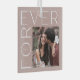 Celebrate your marriage or engagement with this elegant glass ornament featuring a favourite square wedding or engagement photo flanked by "FOREVER" in modern lettering. The year appears inside the letter "O."