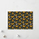 A fun and modern Christmas greeting card featuring a whimsical, seamless pattern of stylized orange foxes wandering through green and white pine trees under a gentle snowfall. Set against a chic, dark brown/charcoal background, this design is perfect for those who love contemporary or rustic woodland holiday themes. Send a cheerful and unique greeting this holiday season with a card that stands out!