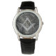 Stylish silver square and compass Masonic symbol personalised watch with an elegant black clock face.