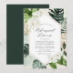 tropical beach greenery geometric frame white floral design. The text and colours can be personalised to match your wedding theme.