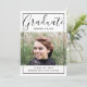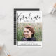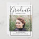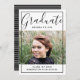 Modern Framed Graduation Announcement with a simple and classic border design in black. Thin stripes adorn the back of this announcement. Add a photo and graduation details to customise. Background colour on back side of invite may be changed to complement the photo or to add a school colour.