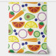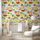 Give your walls a fresh touch with this fruit and vegetable patterned peel and stick wallpaper. This fun, modern style pattern features illustrations of a colourful assortment of fruits and vegetables against a cream coloured background. There are orange and lemon wedges, carrots, avocados, blueberries, cucumbers, and strawberries.