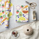Give your gifts a fresh touch with this fruit and vegetable patterned wrapping paper. This fun, modern style pattern features illustrations of a colourful assortment of fruits and vegetables against a cream coloured background. There are orange and lemon wedges, carrots, avocados, blueberries, cucumbers, and strawberries.