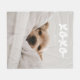 A modern and minimalistic full photo blanket. Customise with your favourite pet photo, and your pet's name at the top of the blanket. You can also change the colours of the text to better suit your photo by clicking on "personalise this template," then "edit using design tool." If you need help making any changes, please message the designer.