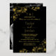 The design is elevated by a luxurious shimmering gold foil double-line border that frames your photo and the custom details within. The typography features the couple's initials, "T & J," and names in a sophisticated mix of classic serif and graceful gold foil script. With a playful and inviting message including "WE’RE DOING THIS!" and the promise of "Dinner, drinks, and bad dancing to follow," this invitation perfectly blends high-end style with personal sentiment.