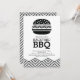 Stylish & modern black & white barbecue invitation featuring a black & white hamburger set on a white background with a chevron zigzag border. Flip our popular barbeque invite over to view a matching chevron back for an extra special touch. Fun invitation for all your summer parties!