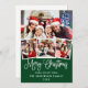 Modern Fun Calligraphy Script 4 Photo Merry Christmas Green Family Card