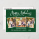 Modern Fun Calligraphy Script Happy Holidays Family 3 Photo Postcard - Green