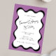This invitation sets the tone for an exciting 21st birthday party with its contemporary design elements. The striking combination of purple and black creates a visually appealing contrast, while the wavy border adds a touch of whimsy and sophistication. The script text lends an air of elegance, perfect for this coming-of-age celebration.
