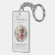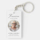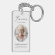 Carry the memory of your loved one with you everywhere you go with our Modern Funeral Memorial in Loving Memory Keychain. This personalised keepsake keychain is a heartfelt way to honour and remember those who have passed. The keychain features a photo of your loved one, surrounded by a sleek and modern design. The words "Forever In Our Hearts" serve as a reminder of the everlasting love and cherished memories you shared. It is a thoughtful and meaningful way to keep their memory close, whether you attach it to your keys, bag, or backpack. This keychain also makes a touching gift for family members, friends, or anyone who wants to remember a special person in their life. Keep their memory alive and honour their legacy with our Modern Funeral Memorial in Loving Memory Keychain.