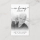 Modern Funeral Photo Loving Memory Prayer Card. Keep the memory of a loved one close with this custom personalised prayer card featuring one treasured photo, the title IN LOVING MEMORY, name and dates and an editable heartfelt remembrance message. With its simple yet elegant classic black and white design and modern script with swashes, it makes a meaningful keepsake to share at a funeral, memorial service or Celebration of Life and offers comfort and a lasting tribute for family and friends. Its small and portable size of 3.5x2" (wallet-sized) makes it convenient for loved ones to carry it with them as a reminder of your loved one’s life and spirit. Personalisation makes each card unique. NOTE: If you upload a colour photo and want it black and white, go to FILTERS in EDIT and select Black & White.)